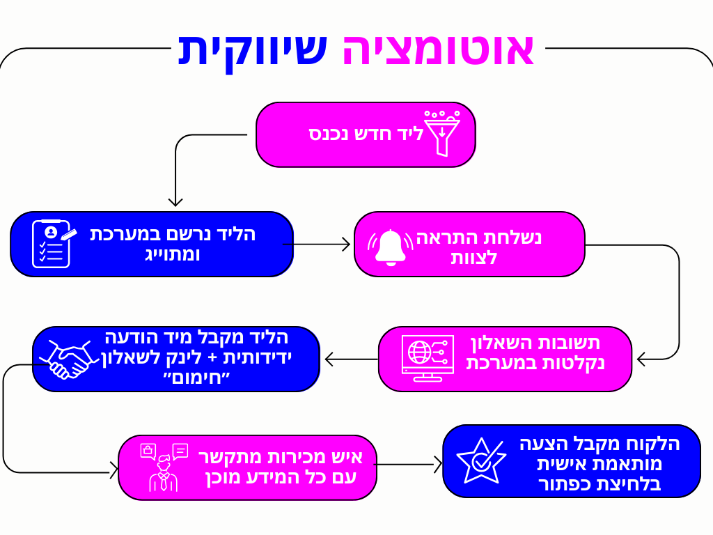ובסופו של דבר? האוטומציה עוזרת לכם לצמוח – לנהל לקוחות והזדמנויות רבים יותר, בלי להגדיל את הצוות או ההוצאות.